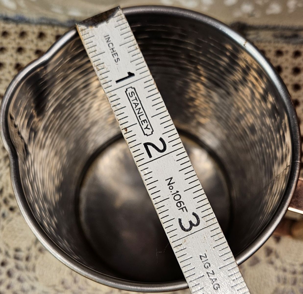 This beautiful copper pitcher is in great, used condition, with no appreciable chips or cracks. *There are very minor superficial scratches. Measurements are depicted in the pictures of the item or listed in the description of the item. Please review the photos, as they are part of the item description.