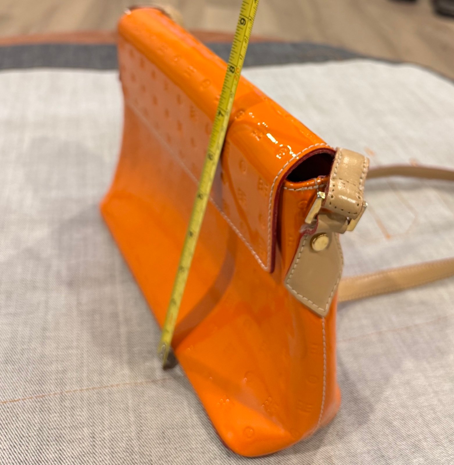 Arcadia Monogram Embossed Patent Leather Shoulder Crossbody Bag in good used and clean condition