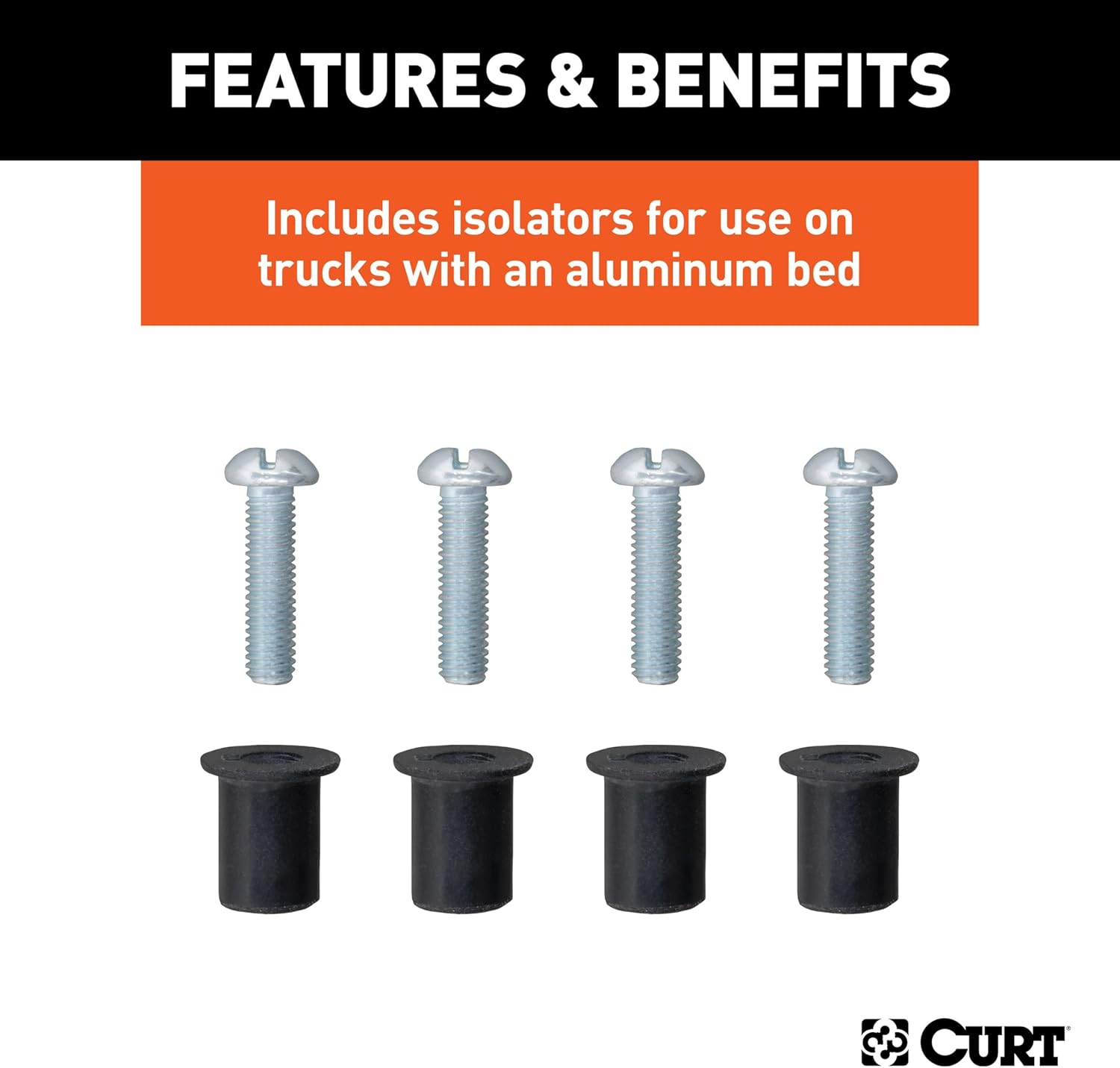 There is nothing like the luxury and power that go along with heavy-duty towing. 5th wheel RVs offer a deluxe, home-away-from-home experience unlike any other, while gooseneck trailers possess a strength that far surpasses most other trailer options. As with any trailer, however, 5th wheels and goosenecks must be equipped with the proper lighting and electrical systems, and tend to require even more complex connectors than a standard receiver-type trailer setup. Make things simple with a CURT 5th wheel / gooseneck extension harness. These wiring harnesses are designed to put an extra connector socket in the bed of your pickup truck while still retaining power to the rear connector socket mounted on your bumper. This is done by plugging into the back of the existing original equipment (OEM) harness and routing through the body of the truck to a hole in the truck bed, providing a connector that is ready to accommodate your 5th wheel or gooseneck trailer. This CURT extension harness is designed to work with 7-way RV blade connectors and comes in a length of 7'. It is compatible with certain years of the Ford F-150, F-250 Super Duty and F-350 Super Duty (see application to verify fitment). For trucks with an aluminum body, galvanic corrosion can become a problem when installing vehicle-to-trailer wiring without the appropriate protection. This kit includes isolators that allow you to install the wiring harness extension in an aluminum truck bed without having to worry about ruining the truck's finish. It includes four bolts for secure mounting and four plastic well nuts to isolate the fasteners from all aluminum surfaces.