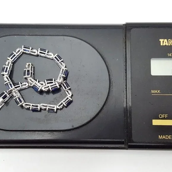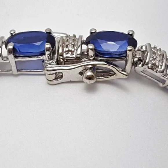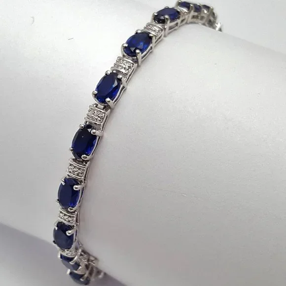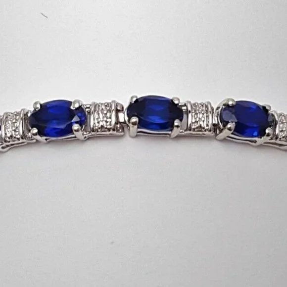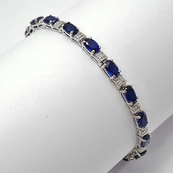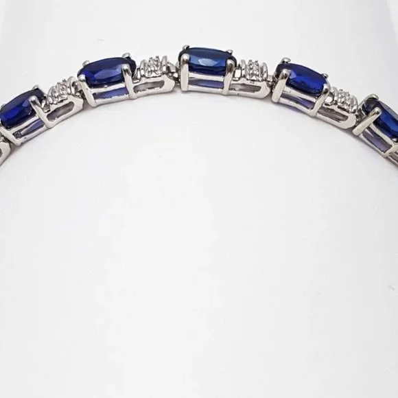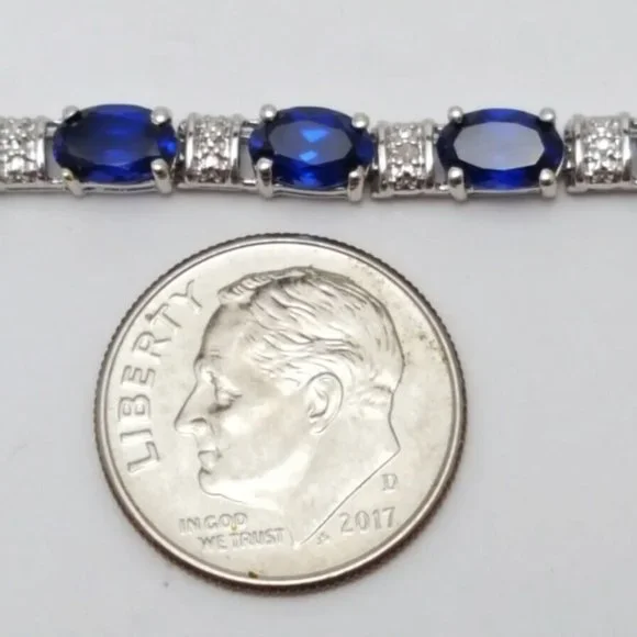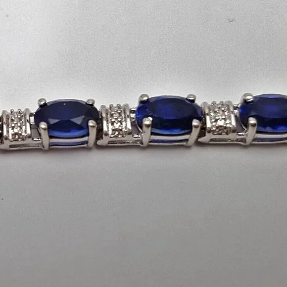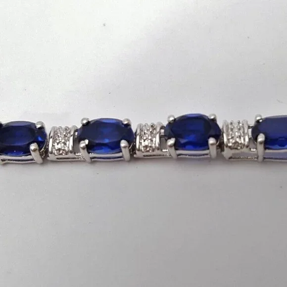 Hello and thanks for checking out another great listing from Golden Route!We hope you enjoy the photos and information presented herein. If you have any questions,feel free to contact us for a prompt and friendly responseBeautiful 10K Karat Solid White Gold Dark Blue Crystal Tennis BraceletCondition : Pre-OwnedProfessionally Polished to look NewTotal Weight : 8.2 GramsGold Color : White GoldBracelet Length : 7" Inches or 17.8cmBracelet Width & Height : 4.2mm x 3.9mmBracelet Includes Total of 19 Oval Cut Dark Blue Crystal Gemstones What you see in the pictures is what you will receiveThis item is presented to you by H&R Jewelry & Loan Co. We are a jewelry store/pawn shop serving the San Fernando valley, CA since 1985, in the same location and under the same ownership. All of our items that are listed on Golden Route have very low reserves or none at all. We specialize in vintage/new musical instruments/equipment, electronics, fine watches and jewelry. We stand behind all of items and are very reliable so you can bid with confidence.Terms & Return PolicyCA state sales tax 9%While we can accept returns for an undescribed flaw or error in the listing, NO RETURNS ARE PERMITTED FOR REASONS PERTAINING TO A CHANGE IN PERSONAL TASTE, PREFERENCE, OR OPINION.