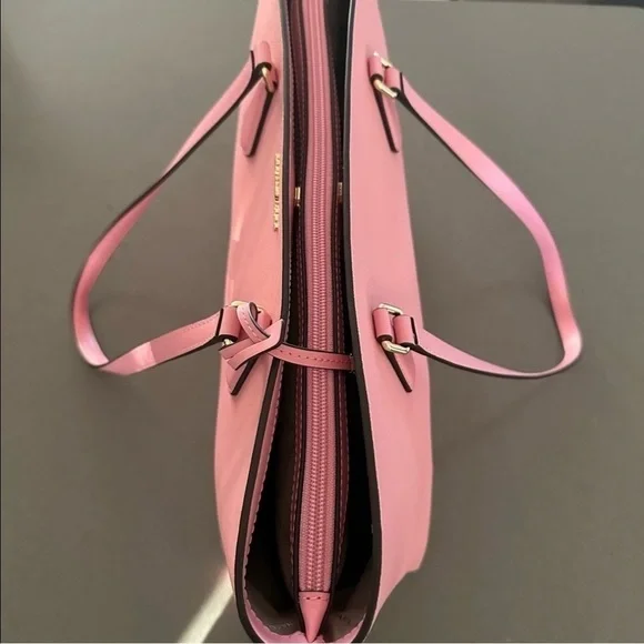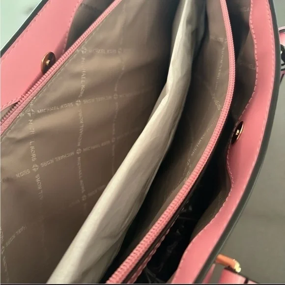Elevate your style with this chic Michael Kors pink tote bag. Perfect for any occasion, this bag combines elegance and functionality.Michael Kors SheilaLarge Leather Multi-Function Tote BagColor - Carnation New With TagsApproximate:Height: 10 inchesLength: 13.5 inchesDepth: 5.5 inchesHandle Drop: 10.5 inchesThree compartments Center Zipper compartment Two side compartments with magnetic closure Great bag for work or travel