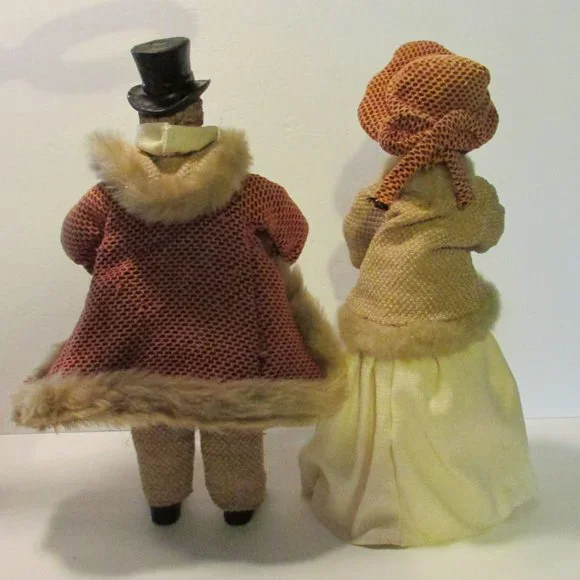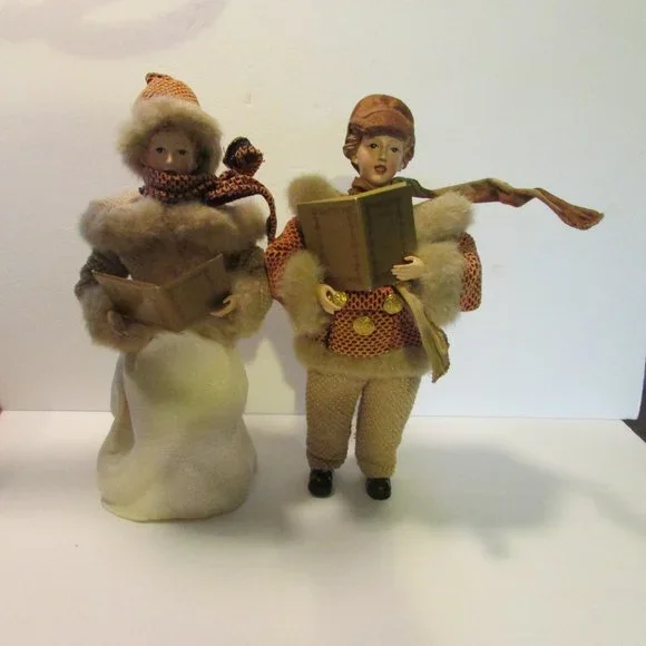 These lovely figures have some wear, the father has a chip on his hat (has been painted to make it less noticeable).Some of the sheet music was missing so it was photocopied to add the figure's folder.Still a nice set to display.The father is about 15" tall.Due to the size/weight of this set it can not be shipped with another item.Loc/box13-25/23rel