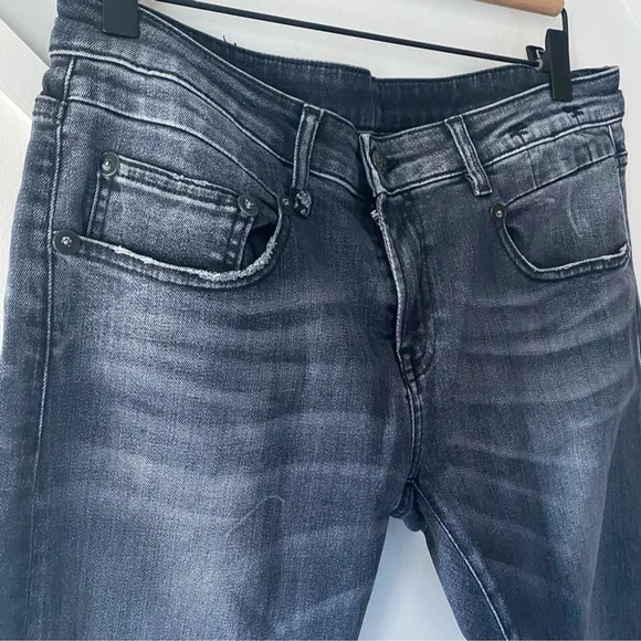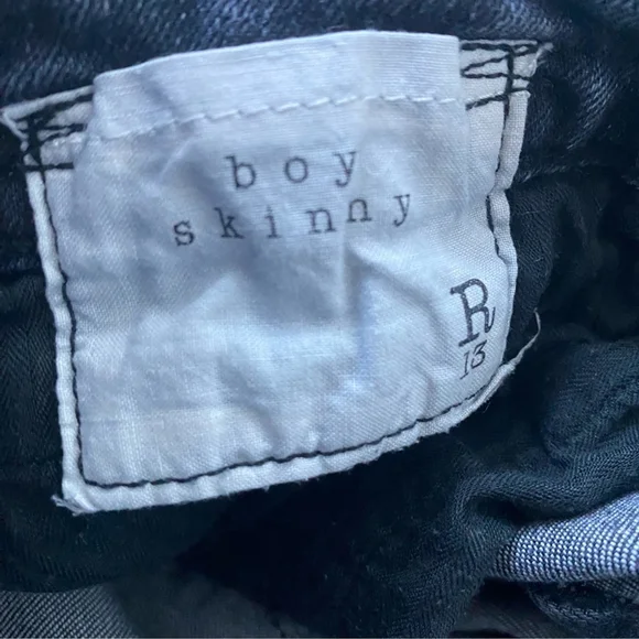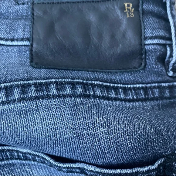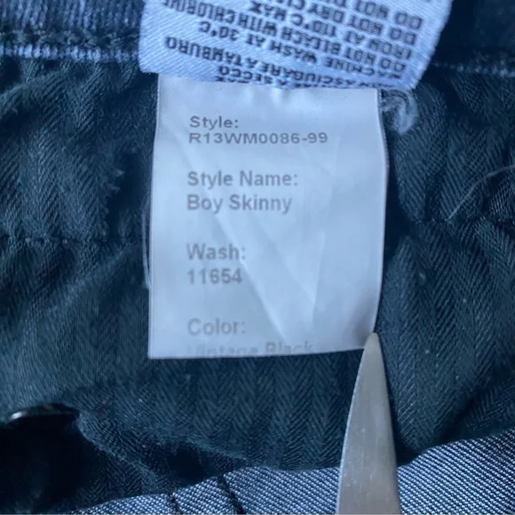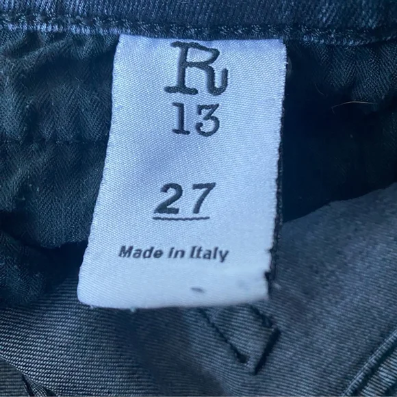 R13 Boy Skinny Low Rise Vintage Black Jeans - 27- Skinny-fit soft denim jeans- Color: Vintage Black- Belt loops and five-pocket style- Leather logo patch at back waistband- Zip fly with button closureMeasurements (laid flat)Waist: 15.5"Rise: 8.5"Inseam: 26"Material: 100% CottonMade in ItalyIn good pre-owned condition. No rips or stains. Minor wear and fade on fabric.Denim, skinny, lux, luxury, casual, spring, summer, beach, weekend, classic, relax, , park, travel, parties, festival, jeans, jean, denim, designer, J123