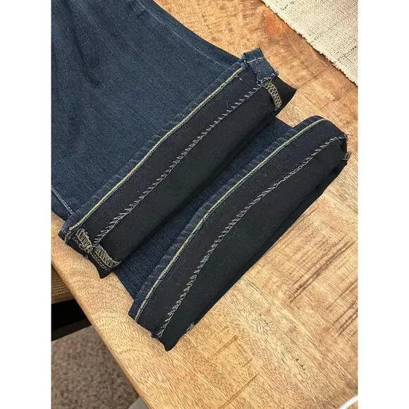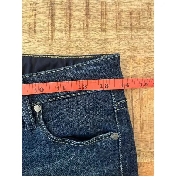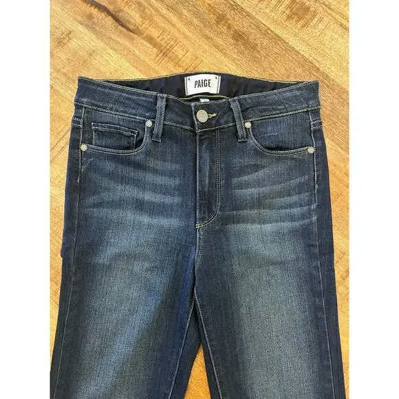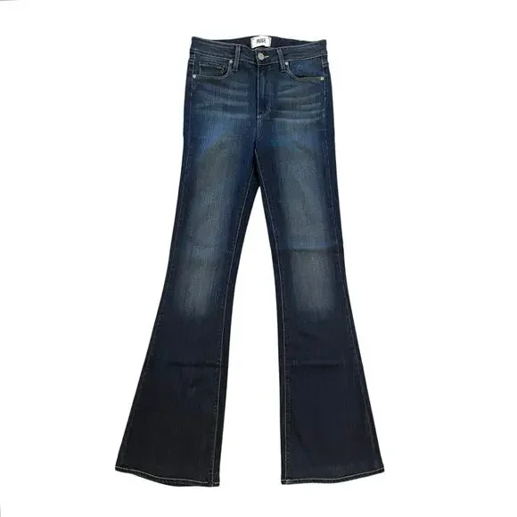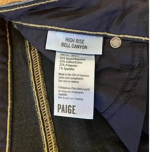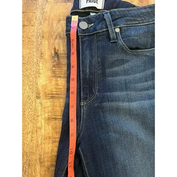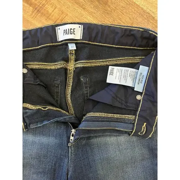 Paige High Rise Bell Canyon Flare Jeans 27 Nottingham Dark Wash Bell BottomHigh Rise: 10"Inseam: 31.5" - THESE HAVE BEEN HEMMED FROM THE ORIGINAL LENGTH. See pictures. Looks professionally done.Waist: 13.75" (flat lay)No distressingClean hemFlare/bell bottom jeansDark indigo wash with light fading on thighSuper soft, stretchy denimZip fly5 pocket styleLike new condition, likely never worn or washed. There is a tiny spot on the left leg near the bottom that had a slight bump in the fabric, otherwise perfect condition🌟NEW TO POSHMARK?🌟 Sign up using my code STYLEDIARY to get $10 towards your first purchase!*****I always ship same day for orders before noon CST and next day for all other orders!*****petite flares, hemmed jeans, 27 petite, 27 short
