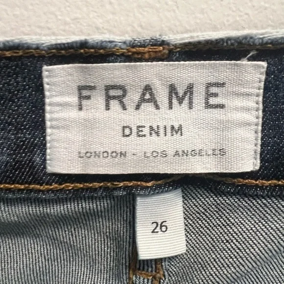 FRAME Women’s Le High Skinny Jeans in Majesty - size 26. A classic high-rise skinny jean with a modern feel. Designed to sit at the small of the waist with a form-fitting shape, this timeless style is cut from stretch cotton modal denim for the softest wear. 77% Cotton/18.5% Modal/3.5% Elasterell-P/1% Elastane10.5" Front Rise/29" Inseam/9.75" Leg Opening. Great condition. Smoke free home 🚭Pet free home 🚫🐶Bundle to save 🛍️Fast shipping 💌Open to offers 🏷️