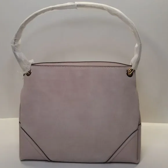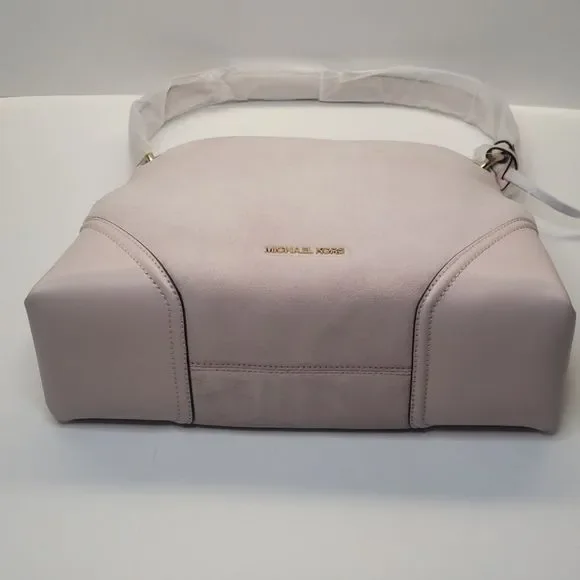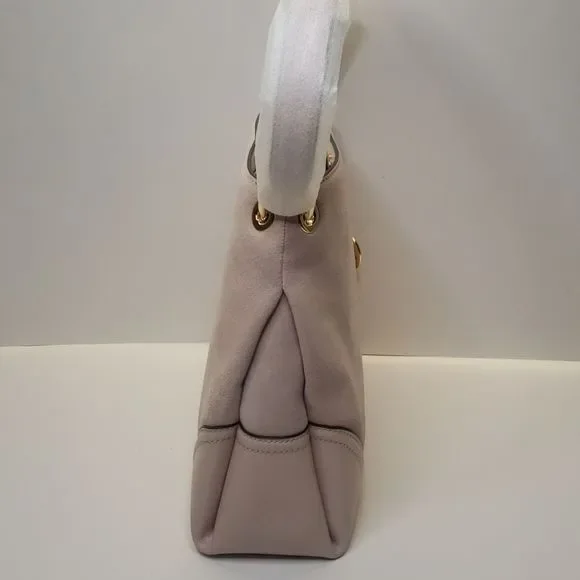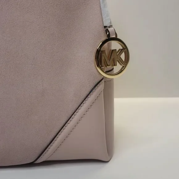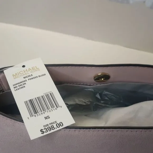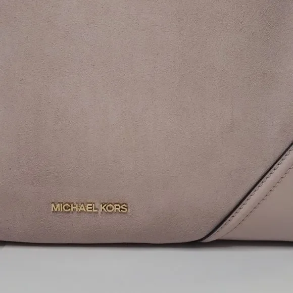 Price is firm Michael Kors Nicole Medium Shoulder Bag Color Powder Blush Michael Kors On Front Bottom MK Charm Gold Toned Hardware Suede LeatherInterior 1 zippered pocket, 2 slip pocket Appx Measurements H 10" L 13" W 4" at the bottom Check out my closet for more Limited Edition Polo Bear, Polo Ralph Lauren, Michael Kors, Kate Spade & Aldo