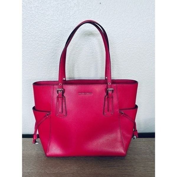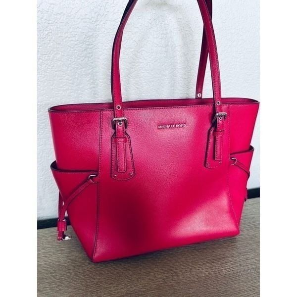 Stunning NWOT pristine Michael Kors large size bright raspberry pink color Voyager shoulder bag tote purse with silver hardware. Zippered main closure with multiple interior compartments and pockets for storage and organization. Clean, nonsmoking home.